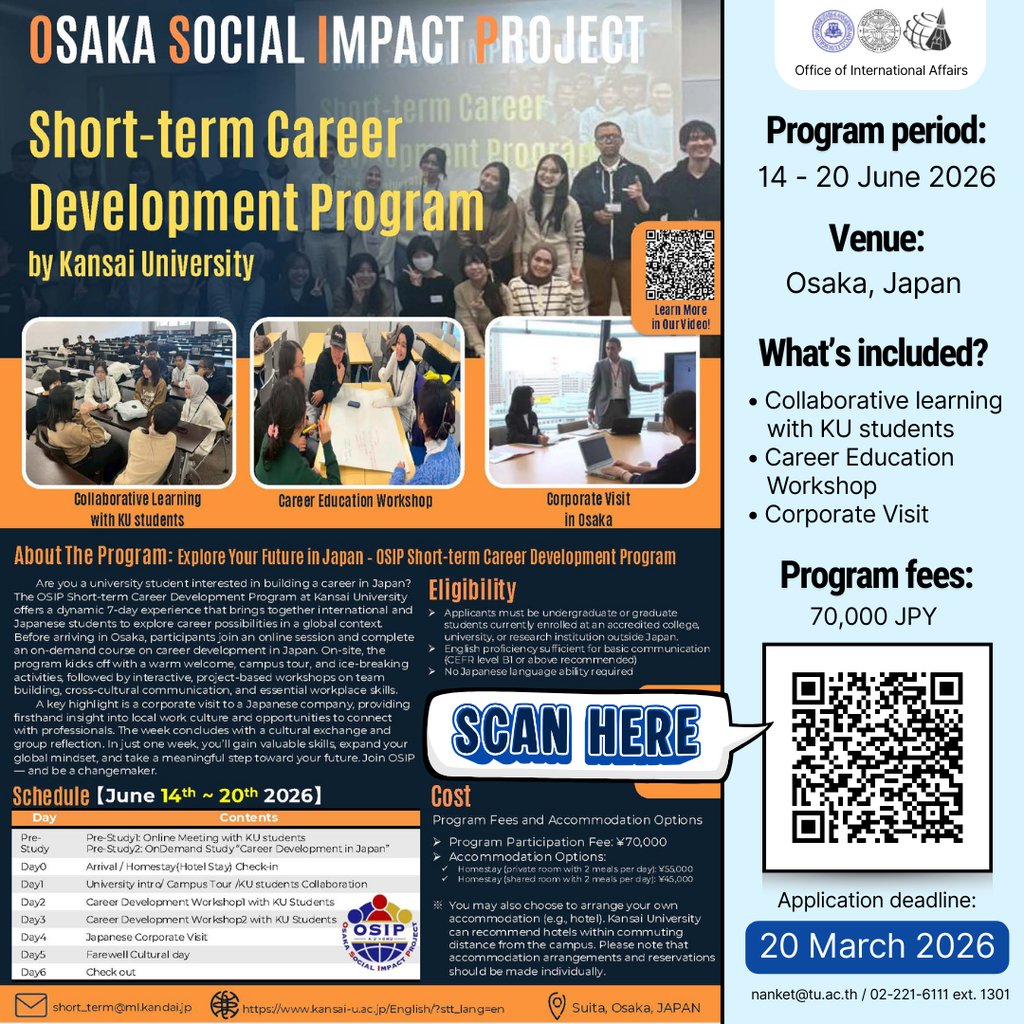 (Apply now – 20 Mar. 2026) Kansai Short-Term Career Development Program 2026