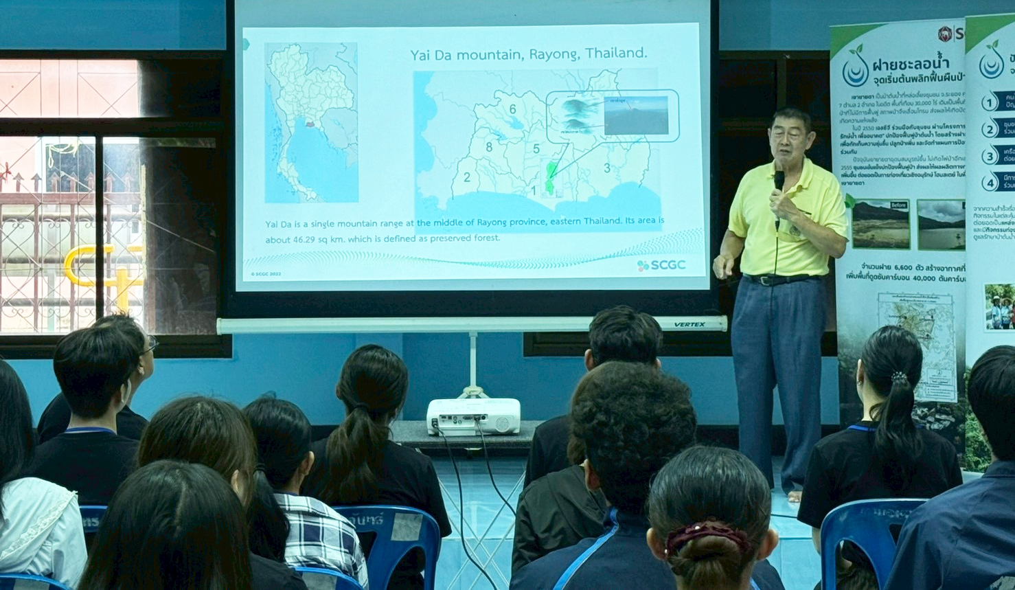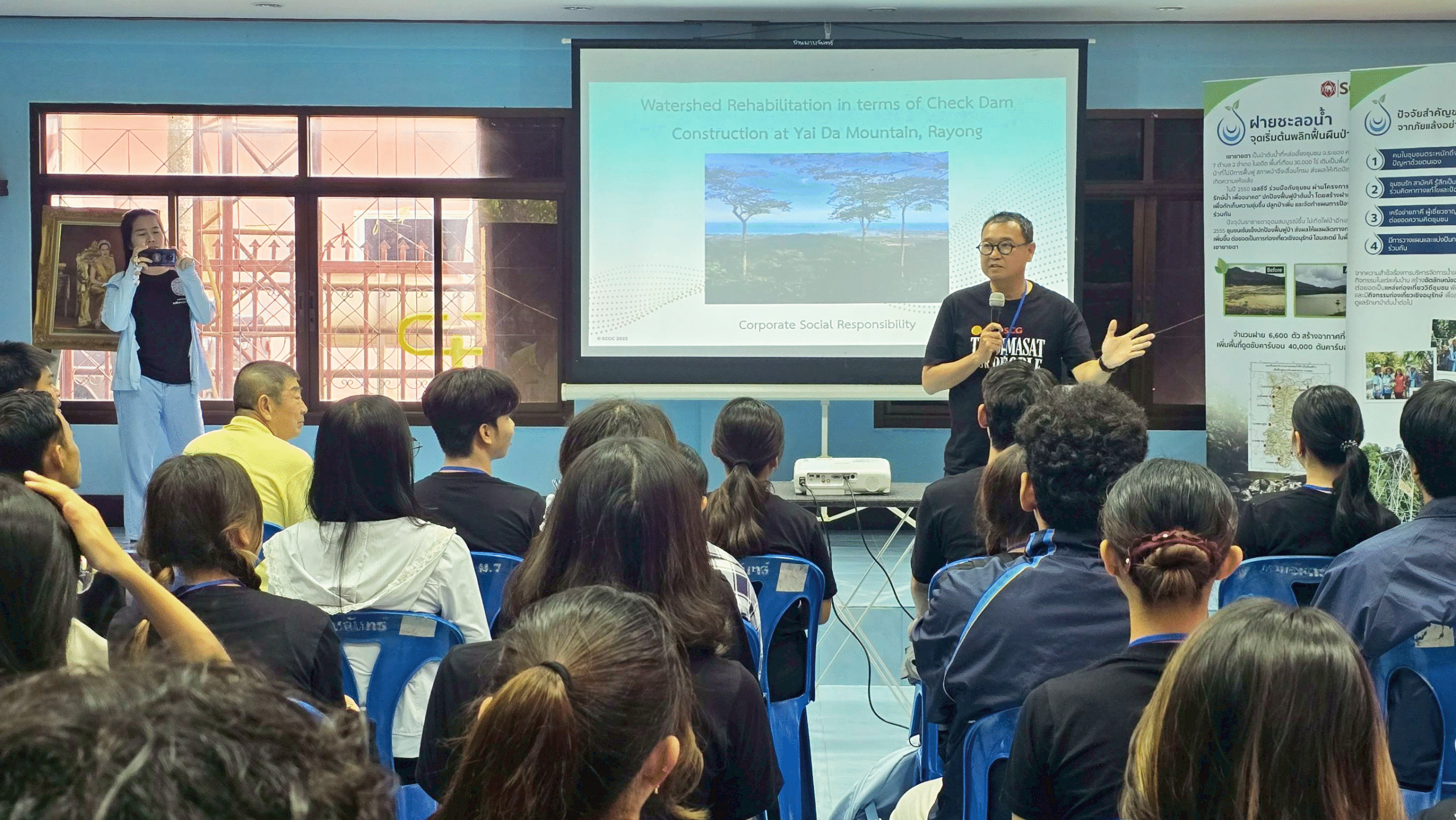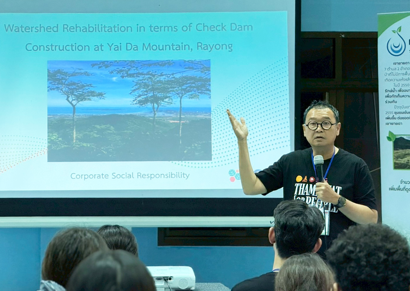Following the opening session, a local conservation expert provided participants with background information on the ecological significance of check dams and their role in addressing water management challenges within the Yai Da Mountain watershed ecosystem.