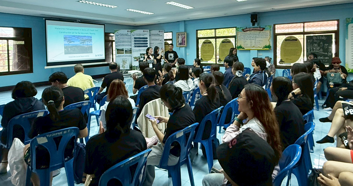 On 18 October 2025, nearly 50 international Thammasat students took a day trip to Rayong province, blending community service with an appreciation of local environmental wisdom. The OIA at Thammasat and Pridi Banomyong International College, in collaboration with the Siam Cement Public Company Limited (SCG), organized a Corporate Social Responsibility (CSR) activity focused on reconstructing a check dam at Yai Da Mountain in Rayong Province. For over a decade, SCG has worked closely with local communities and conservation experts to promote watershed management and sustainable resource use in this area.