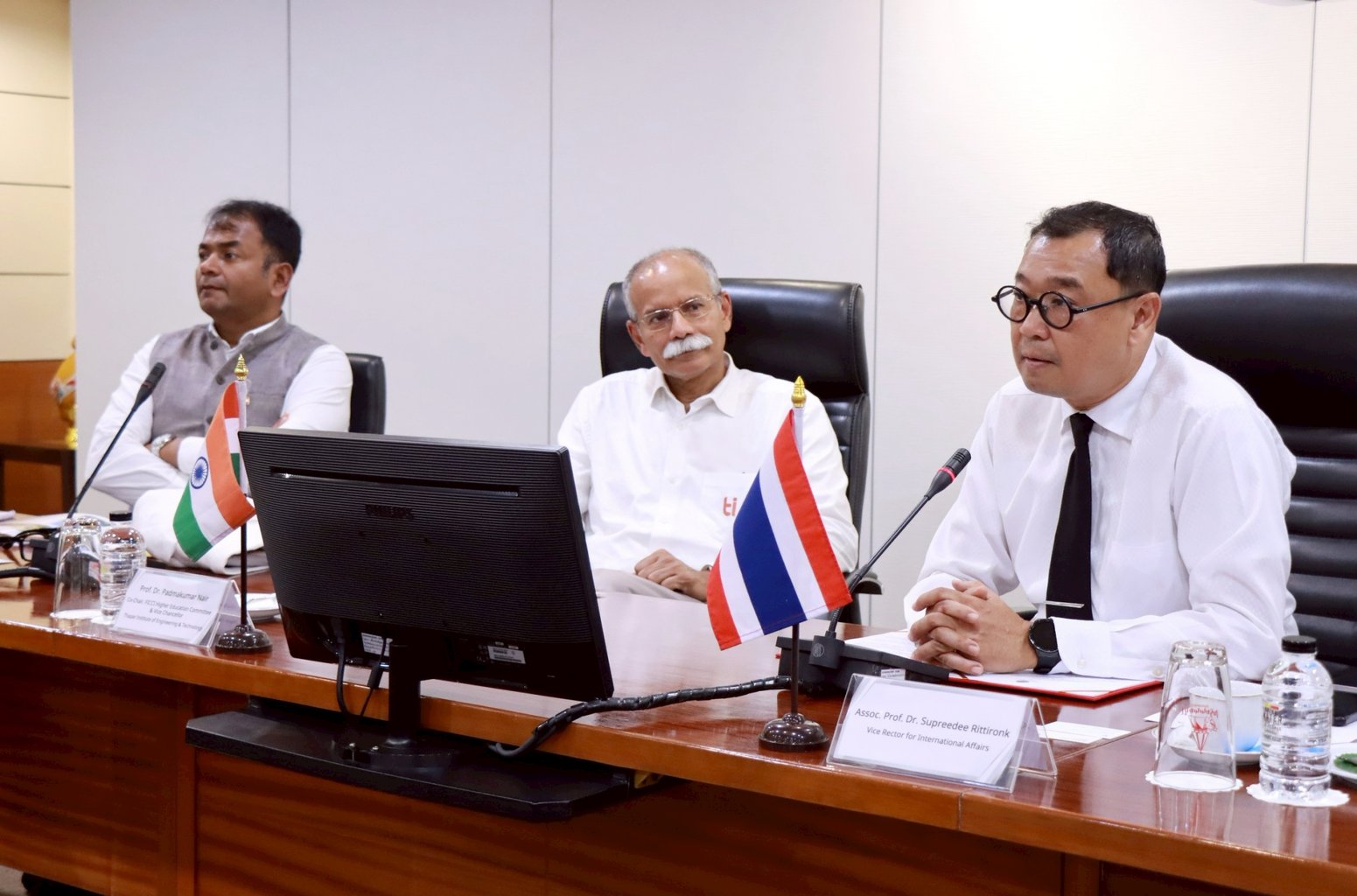 The visiting delegation included executives from several prominent Indian universities, such as Chitkara University, C.V Raman Global University, Manipal Academy of Higher Education, Symbiosis International, Thapar Institute of Engineering & Technology, Vishwakarma Institute of Technology, and Parul University. Representatives from Thammasat University also attended the meeting, including those from the Thammasat School of Engineering, the Faculty of Interdisciplinary Studies, and Pridi Banomyong International College.