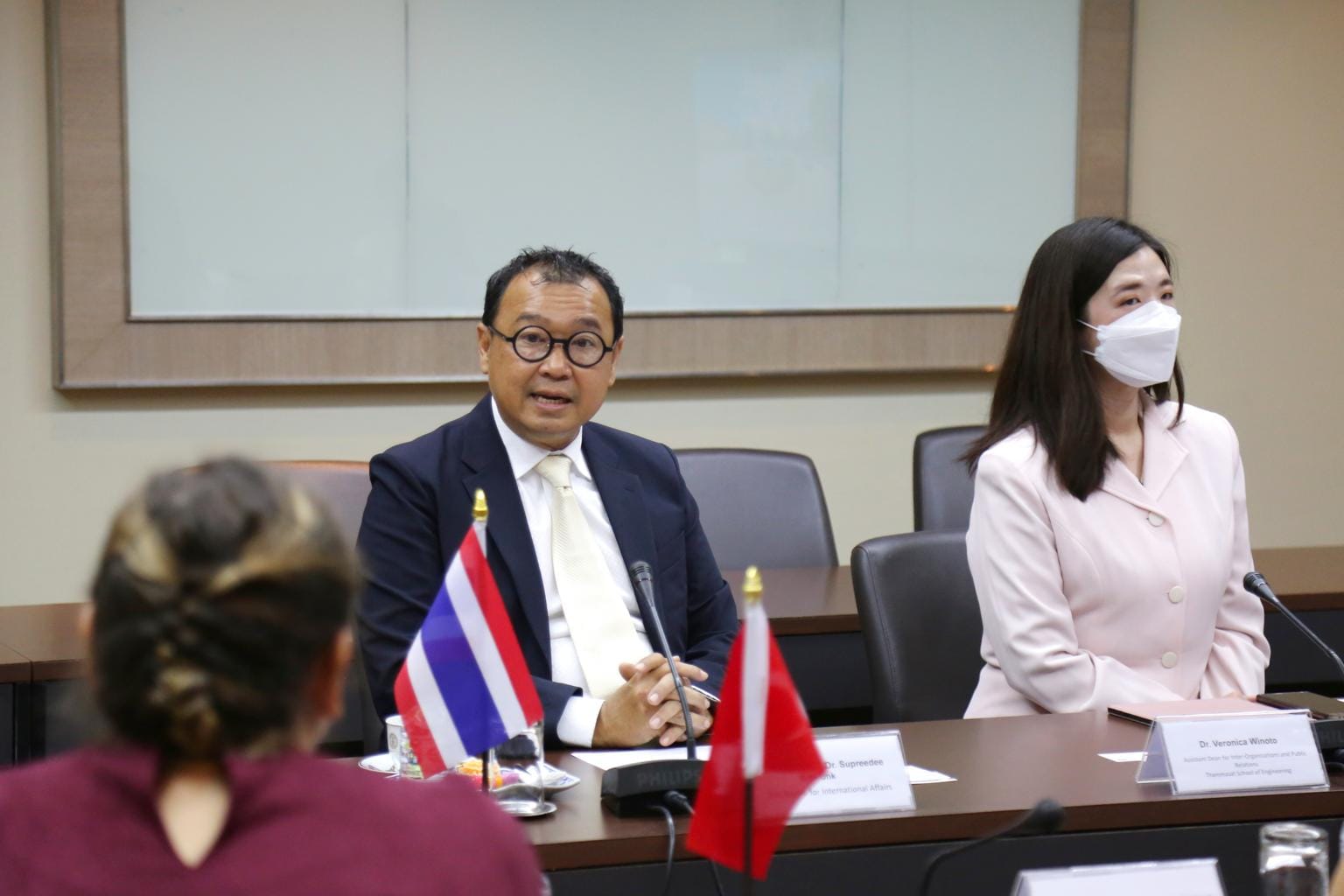 The visit aimed to strengthen collaboration between Thammasat and Kyoto University, focusing on exchange programs and academic initiatives. Both sides provided key information about dormitories, student activities, facilities, and services available to students at both universities who are interested in gaining experience in either Japan or Thailand.