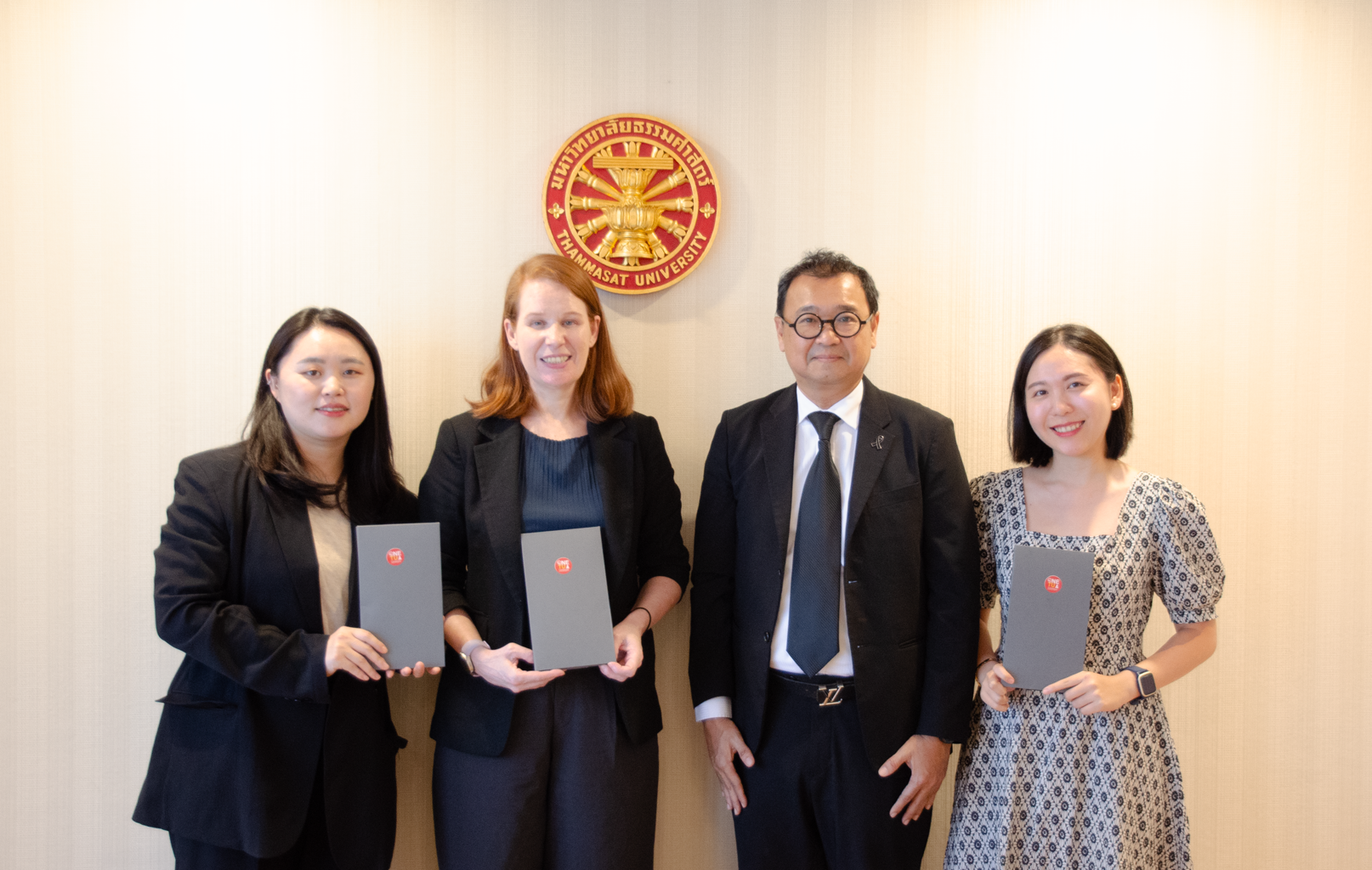 On 10 November 2025, Assoc. Prof. Dr. Supreedee Rittironk, Vice Rector for International Affairs at Thammasat University, and the OIA Coordinator for the Americas, welcomed Dr. Danielle Swanepoel, Executive Director of International Relations and Strategic Initiatives at George Mason University Korea (GMU Korea), along with senior administrative representatives, during their visit to the Office of International Affairs at Thammasat’s Tha Prachan campus.