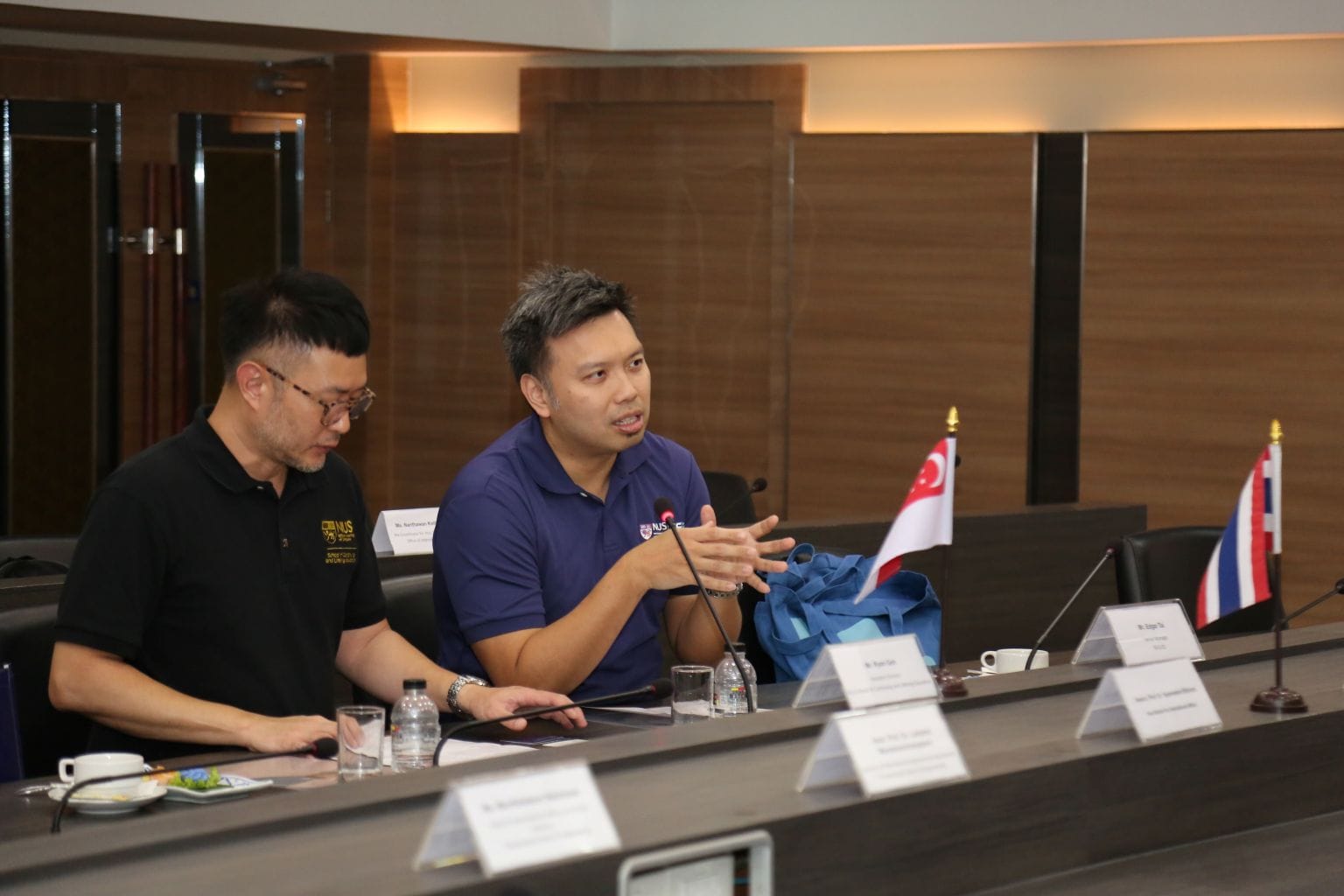 On 17 February 2025, Assoc. Prof. Dr. Supreedee Rittironk, Vice Rector for International Affairs, hosted a visit from Mr. Ryan Goh, Assistant Director at the National University of Singapore’s School of Continuing and Lifelong Education (NUS SCALE), and Mr. Edgar Tai, Senior Manager, NUS-ISS (Institute of Systems Science), at Thammasat Rangsit’s campus. Joining the Vice Rector were senior executives and staff from the Faculty of Engineering.