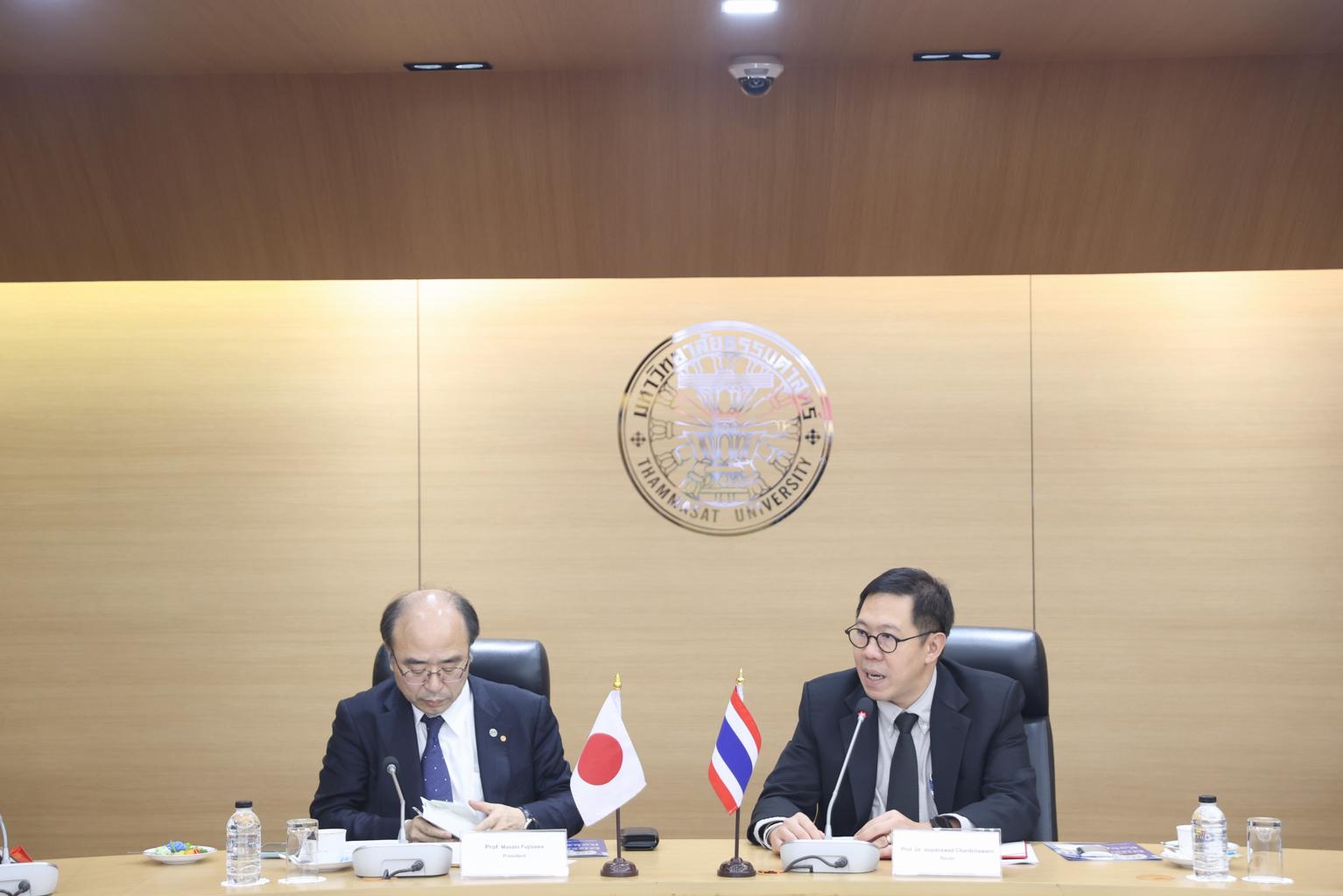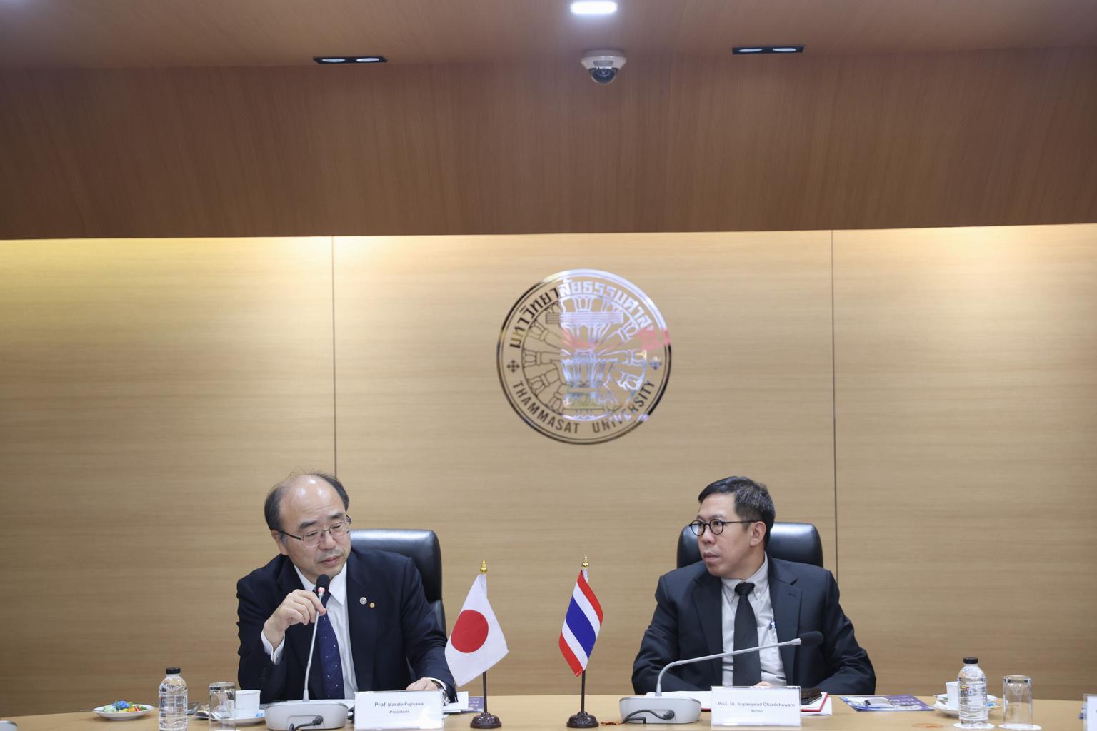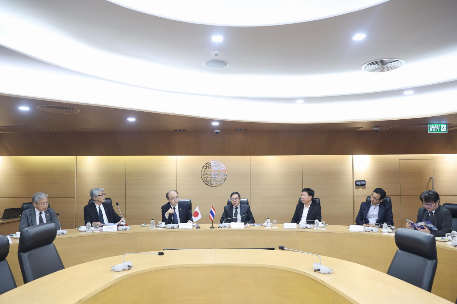 Thammasat University reaffirmed its long-standing partnership with Kobe University during a high-level meeting held at Thammasat’s Rangsit campus on 3 November 2025. Thammasat Rector, Professor Dr. Supasawad Chardchawarn, hosted the meeting with Prof. Dr. Masato Fujisawa, President of Kobe University in Japan, who was accompanied by Prof. Dr. Hisashi Tamaki, Executive Vice President in charge of Education and Internationalization; Prof. Hiroshi Okumura, Executive Vice President for Public Relations, Funding, Information and Risk Management; as well as other senior university executives.