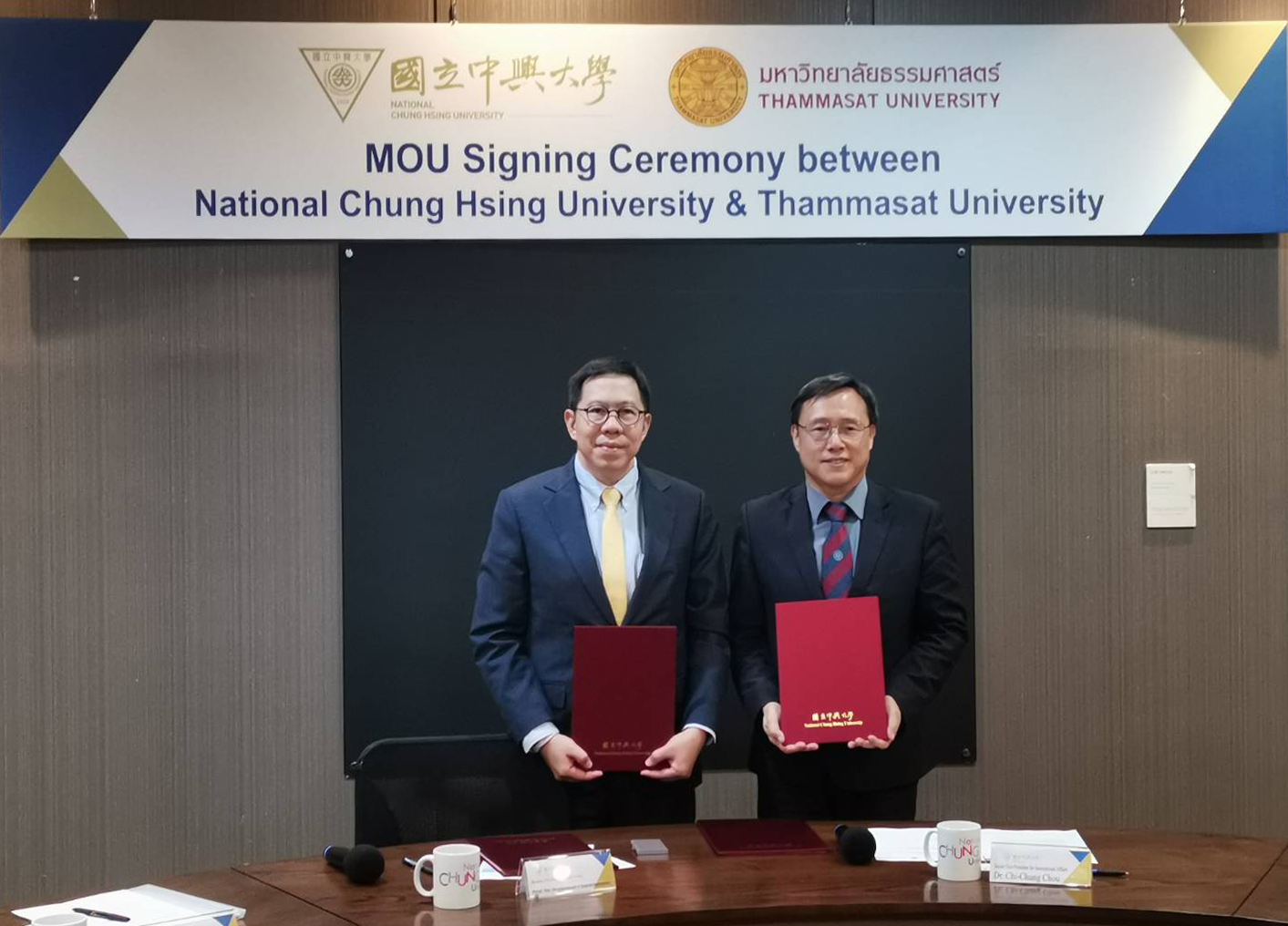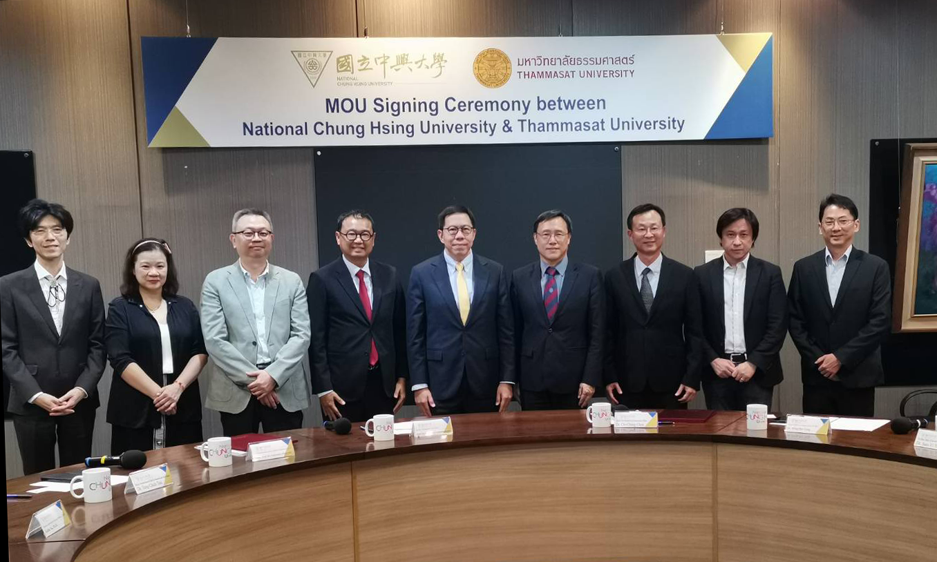 Later that day, Thammasat University co-hosted an MOU renewal signing ceremony with National Chung Hsing University (NCHU) at its main campus in Taichung City. The agreement was officially signed by Prof. Dr. Supasawad Chardchawarn, Rector of Thammasat University, and Dr. Fuh-Jyh Jan, President and was witnessed by representatives from both universities, including their respective Vice Rectors for International Affairs.